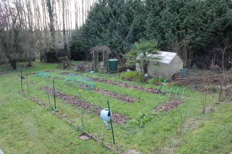 Le potager se prolonge juste derrière la maison d’un jardin de plantes condimentaires et de 2 plans de vigne.