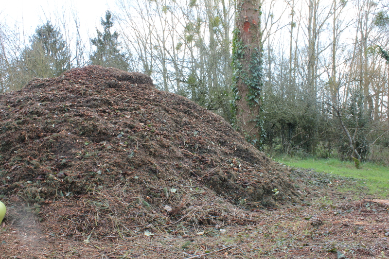 Dans le prolongement de la serre : le « vieux potager ». La partie la plus ancienne, bien trop près de la haie du voisin qui fait maintenant plus de 10 m. Impossible d’y faire pousser des tomates, poivrons … J’y cultive donc les cucurbitacées comme les citrouilles. C’est là que nous avons étalé le « compost en tas » de l’année. (bon quand je dis nous, c’est mon chéri qui a fait les voyages en brouette. Moi, je lui ai juste dis où le mettre).