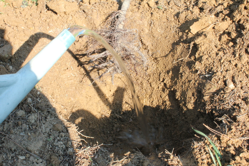 J’arrose pour que la terre « se tasse » un peu et ne laisse pas des poches d’air autour des racines.