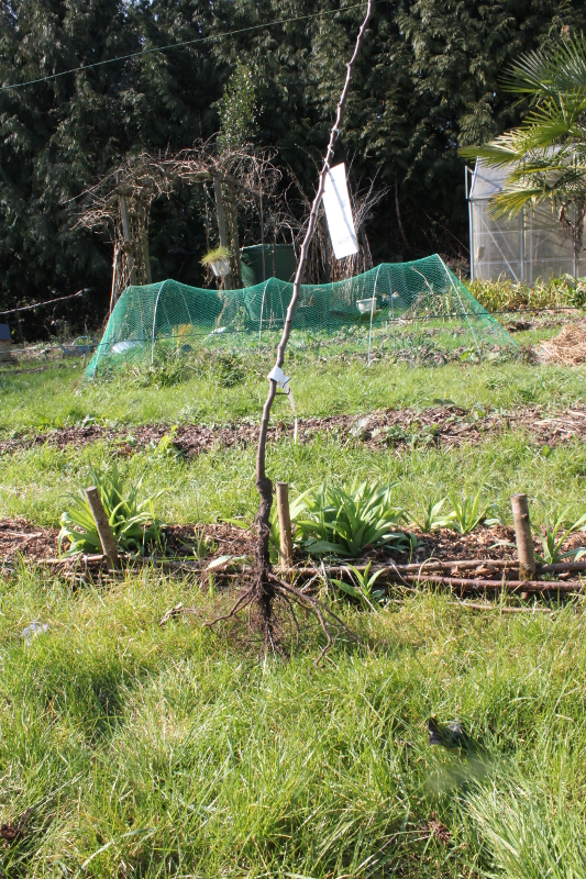 J’ai choisi des scions : jeunes arbres fruitiers, greffés d’un an. Ils seront plus long à fructifier mais prendront mieux et surtout sont BEAUCOUP moins cher que les arbres déjà formés.