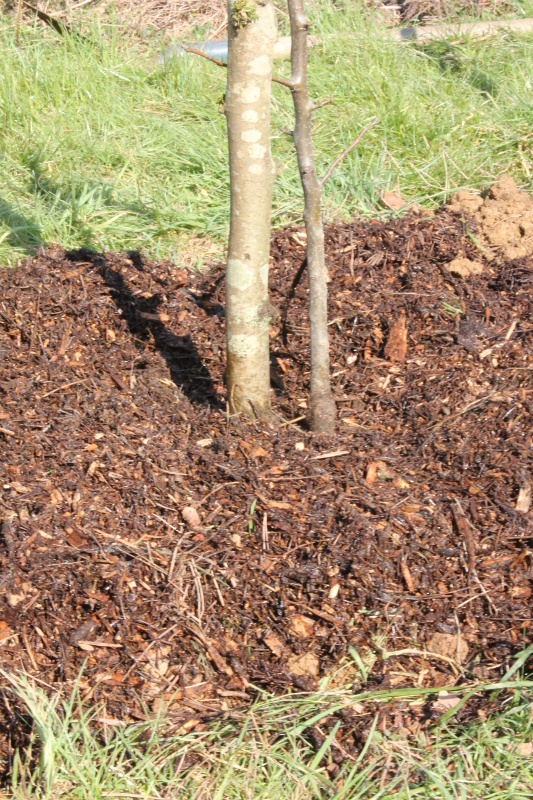 Il est important de mettre le compost sur le sol et non dans le sol. Car dans la nature, comme en permaculture, la matière organique se dépose sur le sol (comme les feuilles à l’automne). Les petits vers viendront la chercher, la digérer et la rendre donc accessible au petites racines de l’arbre. Si on met le compost dans le trou, en dehors du fait que, dans la nature, ce n’est pas sa place, en arrosant on va la faire migrer plus vers le fond et donc peu accessibles aux jeunes racines. (c’est la première leçon que j’